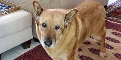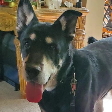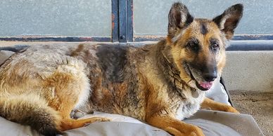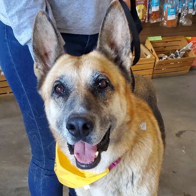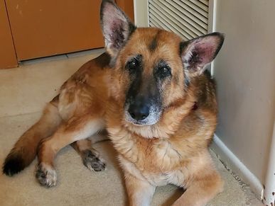 Collette has been adopted by her foster Family! Collette, is a 13 year old German Shepherd owner surrendered on May 26,2020. We adopted her May 31,2020 after a huge tumor was removed from her side. When we called to inquire about her, there was not a picture. It simply said black and tan 80 pound dog in the medical ward. We figured she was either rottweiler or shepherd. Either way, she needed out and we were the answer. Collette is an amazing dog. She is very sweet and friendly. She gets along with all the dogs. In the summer of 2020, we gave her to one of our neighbors to foster so we could pull another dog. She is so happy at our neighbor's house. Of course she became a foster fail!