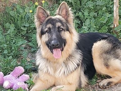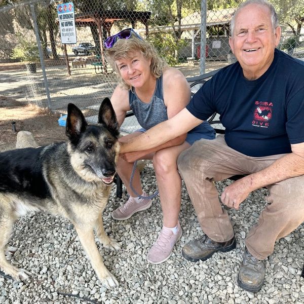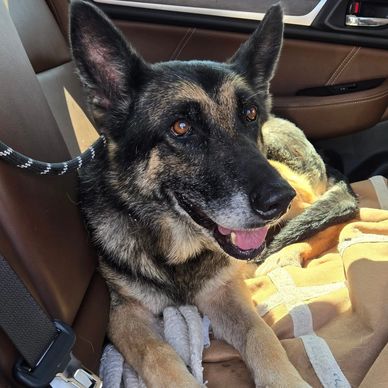 September 5, 2025, Zach was owner surrendered to the shelter. The owners said he got loose and went after a dog on the street. Otherwise, they said he was nice and friendly with other dogs and people. We had two people interested in adopting him. We rescued him on September 29, 2025. The first couple are fostering him and the second couple are fostering a different senior german shepherd! In his new home, Zach, now Canada, is great! he is laid back and comfortable in his new home. he has arthritis and does not move fast; the fosters find it difficult to believe he ran after anything! The fosters are smitten with him. they said he's really chill. he's tried out every sleeping space in the house! He loves his walks and his new humans.