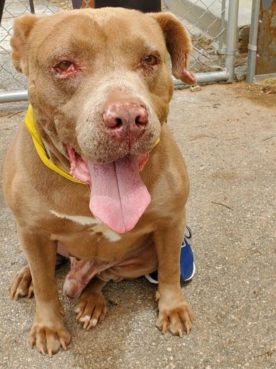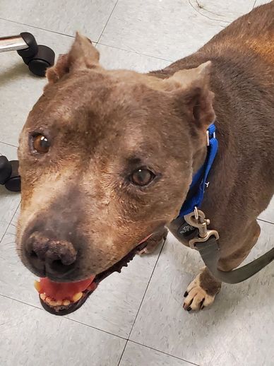 We just fell in love with this dog when the shelter sent out the first medical plea. We had to save him! This is Chimaera, aka Sharky from the North Central shelter. He is an 11 year old staffie that was brought to the shelter on May 3 2024, with a little dog after their owner had a stroke and could no longer care for them. The little dog was adopted, but sharky sat. We posted several times asking for a foster. Finally, someone stepped up to foster. His foster is a wonderful woman who is giving sharky a great life! His foster loved him so much that she adopted him!