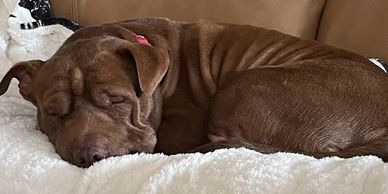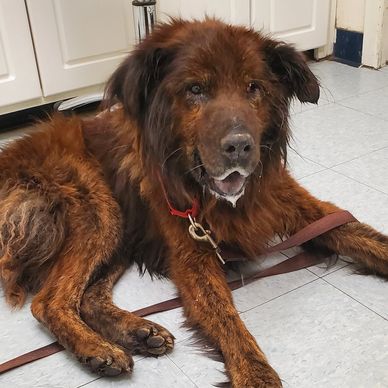 Claire found herself at the shelter after being left tied to one of the door on August 15, 2022. She is estimated to be nine years old. She has several medical issues, including being underweight, flea infested and having bad, itchy skin. The shelter was going to euthanize her as she seemed unadoptable and they need room. We could not let that happen! Claire, previously Betty, will want for nothing now and have the best of the rest of her life here! Claire is a very happy dog who loves attention. She gets along with the other dogs and enjoys her daily walks. Of course, her favorite things are eating and sleeping! We had her less than a month when one of our previous adopters asked to adopt Claire. Of course we said yes! Claire now has a big furry brother and a wonderful family!