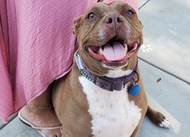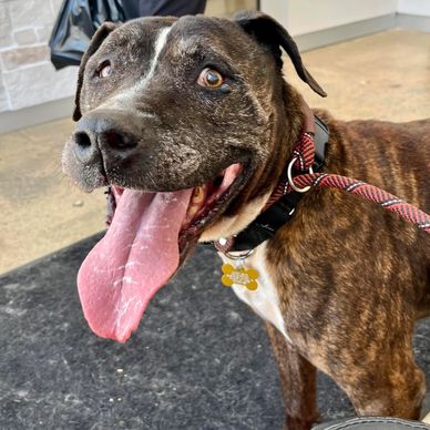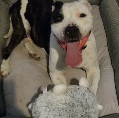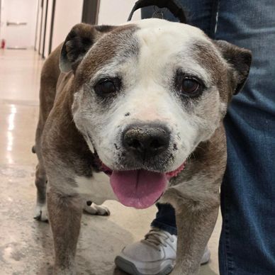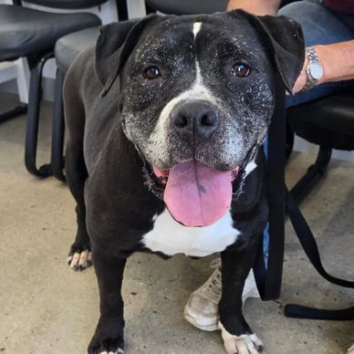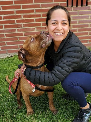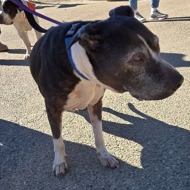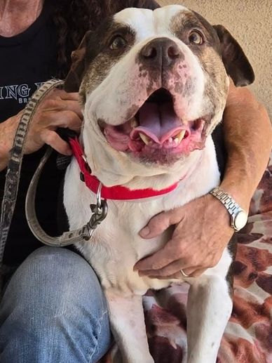 Crankshaft, aka Droolius Ceasar from the Carson ACC spent 100 days in the shelter! He is a 10-year-old neutered male staffie that came to the shelter as a stray. He was a staff and volunteer favorite. And yet, no one wanted to adopt him! So, he was going to die! We scrambled to find a foster and rescued him from certain death on September 9, 2023. Unfortunately, the foster offer fell through at no fault of crankshaft. Crankshaft was at our sanctuary where he had to be separated because he seemed to be male dog aggressive. We hated that for him! On January 31, 2024, we found a great foster for him. She had no other dogs and loves the bully breed. Of course, she fell in love with him, and he with er, so they made it official. She adopted him on July 24, 2024!