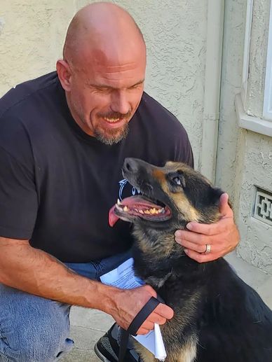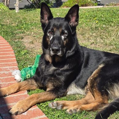 Ready for a miracle...... check out Cairo's recovery! On May 3, a twelve-year-old German. Shepherd came into the Downey shelter as a stray. They called him Elijah, he had severe arthritis and difficulty standing up and walking. We rescued him on June 10th. We assumed he was a hospice dog. He could not stand up without the help of a sling, and his walking was limited. Yet, after being in a home for several months, getting cold laser therapy from our veterinarian and being on carprofen, he has made a miraculous recovery. He does not have myelopathy. His arthritis is under control, and he is not only walking, he is running around. Our foster planned on fostering him short-term. She wants to save another dog from the shelter, and is now asking us to find him a forever home. Now that his prognosis is good, we would love to find him a forever home. Here is what the foster had to say about him: he needs a chill and quiet house. He does not like loud noises or bangs. He loves to be outside exploring with his person and then loves to snuggle in bed. He does well with small dogs and doesn't know his own size. He would do great with a larger dog. He is incredibly smart and aware. I think he would do really well on a larger piece of property or land where he can roam. .