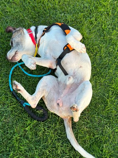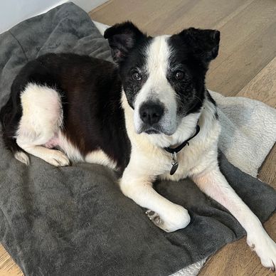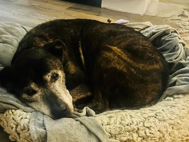 On April 30, 2025, Coraline aka bon bon, #a47991571 was freed from the castaic shelter. This amazing, 11-year-old cattle dog mix originally came to the shelter as a young pup in 2015. She was adopted and then dumped back at the shelter in 2018. She was adopted a month after being dumped, and then returned to the shelter for the third time on April 17, 2025. The shelter doesn't like return guests, so of course she was on a euthanasia list. One of our board members found a great foster for her, and we are able to rescue her on April 30th. We are grateful that this is her final destination and excited to give her the best of the rest of her life. As you can't see in the photo. She has settled right into her new home. Of course her family fell in love with her and adopted her on July 12, 2025. Happy life coraline!
