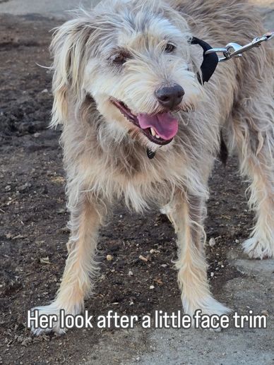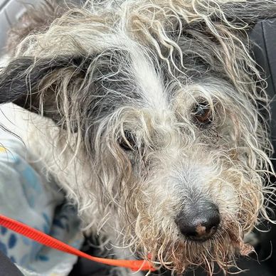 Just wait until you see the after photos! This is Scrappy, now catalina, This scared sweet 14 year old terrier mix came in as a stray to the Castaic Animal Care Center on November 3rd. Someone reached out to us saying they wanted to give her a forever home.of course we would help with that! We are so happy to share that we rescued her on November 18, 2023. She has an amazing forever home now. She is touch sensitive,. and her new humans are working with her and allowing her time to gain trust and learn that love is awesome!