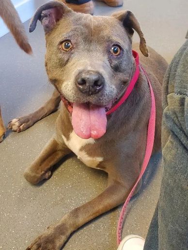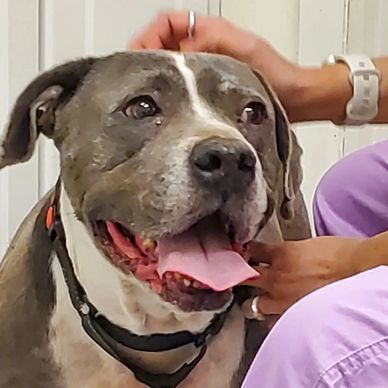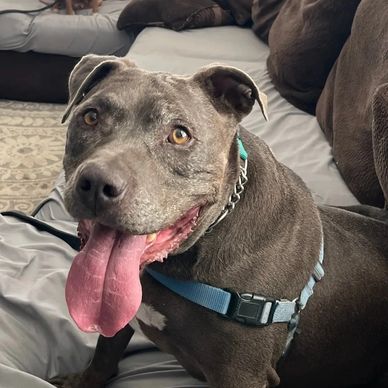 Callie is a 12 year old gray Staffordshire terrier who found herself owner surrendered at the Lancaster ACC on May 11, 2021. She had tumors and while she was super sweet, she was overlooked due to her age, breed, and medical condition. The shelter removed her tumors and someone reached out to us asking if we would pull her for him to foster. Of course we would! On September 13, 2021 we rescued Callie, providing her with a wonderful foster parent who adores her. Callie's dreams came true as her foster has decided to adopt Callie and love her forever.