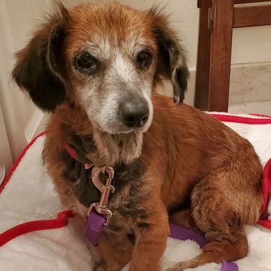 Happens every day... A senior dog is owner surrendered at the shelter for no reason. Such was the case with Churro, previously Oscar from the Baldwin Park Shelter. He is an 11 year old dachshund mix who was brought in on February 10, 2024 severely matted. He was fearful and didn't want to be touched. Shelter staff sedated him to clip off his terrible coat and also gave him a dental. A wonderful woman and her son volunteered to foster this sweet dog. Our veterinarian said he needs further dental work to remove his canines. We are going to let him settle in and enjoy his forever home before we sedate him again. Until then, we are so excited to give him the best of the rest of his life. Of course, his foster fell in love and adopted him! Our sweet Churro passed away peacefully in his sleep on October 11, 2024.