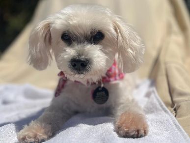 This is one happy dog! Cough, aka Sonia, #a5694776, was adopted today! We rescued cough from the Downey shelter on May 19, 2025. She was brought into the shelter on April 25th as a stray. She then developed an upper respiratory infection that they thought turned into pneumonia, and they immediately put her on a euthanasia list. Thankfully, someone stepped up to foster her and we were able to rescue her on May 19, 2025. Ends up, she only had aspiration pneumonia, she wasn't dying and she was going to be just fine. On top of that, despite what the medical notes said, she had no cough or URI symptoms. So we named her cough. She's an 8-year-old Maltese, and we knew that we would get her adopted, we hadn't even networked her yet, when someone reached out to us about wanting a little dog, and we knew this dog would be perfect for this couple. They met her and fell in love. She was adopted on June 29, 2025,. We're so happy to give cough the best of the rest of her life and a wonderful home. Thank you for adopting.