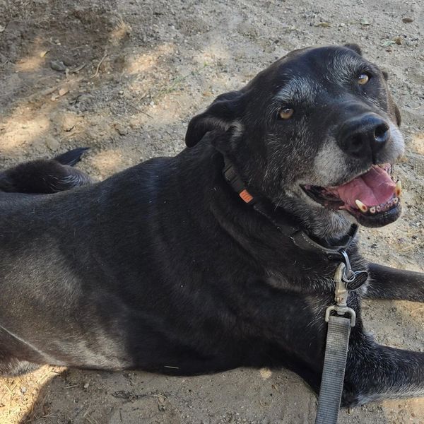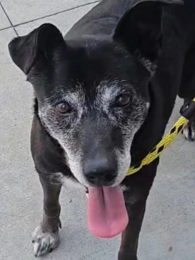 This happy, sweet dog is Caylin, aka Lola #A5699590, from the Baldwin park Shelter. She found herself at the shelter as a stray on May 14, 2025. They estimate her age to be 12 years. She was friendly, wiggly and had no significant health issues, except her skin. Older black dogs are a dime a dozen at the shelter so her chances of getting out were slim. Then came our foster! Our foster has fostered two other wonderful dogs for us. She fell in love with Lola and asked if she could foster. Of course we said yes! We rescued her on June 22, 2025. We are treating her ears and skin and caylin is enjoying her life in a home with a great foster and another dog! Unfortunately, our foster fell and broke her leg. She was unable to care for Caylin. We posted for a foster and another repeat foster stepped up to help. We brought Caylin to the new foster and the very next day, the foster adopted her! it was meant to be. Borth the foster and Caylin are super happy!