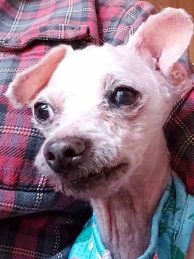 We are so grateful to have people willing to foster these old little dogs! Chipmunk, aka Kenai from the Castaic Acc was dumped at the shelter on January 28, 2023 as an owner surrender. He walks very slowly and is skinny. Our wonderful foster saw him and reached out to us for assistance. Of course we said yes! Besides moving slowly, he has a heart murmur and dental disease. When we brought him to the vet we discovered he was in kidney failure. The foster stepped up to adopt him and give him the best life she could for whatever time he had left.