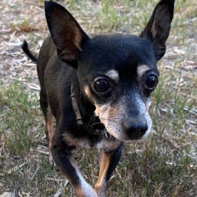 This little dog is awesome! She was shy at first, but is learning that new people are nice. She a love bug once she trusts you. She is only 7 and not a dog we would normally pull. She was owner surrendered to the Downey Shelter on July 22, 2022. A week later she had a URI which turned into pneumonia. The shelter treated her and she did get better. The x-rays done for her pneumonia showed she also had spondylosis. The shelter was eager to get her out. Someone reached out to us and said there was a foster offer and would we help her? Of course we would! her foster and I were thinking of all sorts of "C" names while we waited for molly to be released. Once we met her, her foster mom said she should be called Chalula. Unfortunately, here foster returned her to our sanctuary for her own personal reasons. While we love having chalula here, we are happy to give her a forever home outside the sanctuary as well. Chalula hit the jackpot with an amazing family that adopted her on January 21, 2023