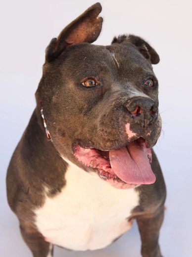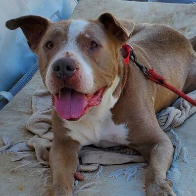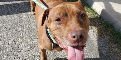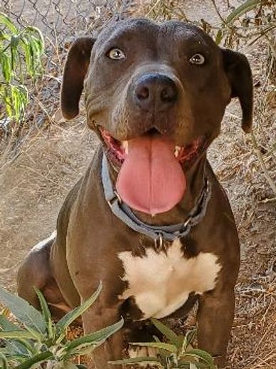 If you want a sweet, goofy, lovable, friendly, 6 year old blue nosed pit...look no further than Cobalt! Cobalt, aka Blue from the North Central Shelter, was found on freeway on March 23, 2023. he spent over ONE YEAR in the shelter! he was set to be euthanized on April 2, 2024. at the last minute, someone reached out to us about fostering a cat and agreed to foster Blue short term so we could save him. She returned him to the sanctuary due to no fault of his own. While he gets along great with all the dogs, a senior dog sanctuary is no place for a medium energy young dog! He had his tumors removed. He is great with other dogs and has been getting obedience training so he now walks so much better on the leash! he is housebroken and very friendly with people and dogs. he is a wonderful dog and will be someone's best friend. Please adopt today! Cobalt deserves a great life; we are here to make sure he gets it. You can help! Check out his videos! Finally, a wonderful couple adopted him September 28, 2024!