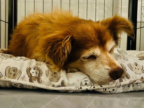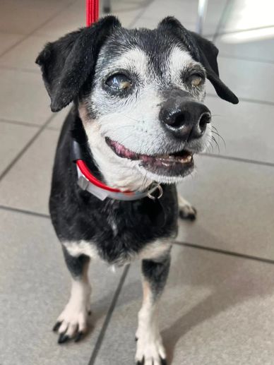 Cedric came into the shelter as a stray after possibly being hit by a car on May 19, 2025. We were not going to wait for pleas from the shelter on this dog. We knew we had to get him out asap! This poor twelve-year-old geriatric dog was having trouble walking, and sometimes fell. He has a heart murmur, terrible skin, dental disease, and is partially blind...and we will provide the medical care he needs to give him the best of the rest of his life! Of course his foster adopted him July 31, and he can live happily ever after with his new mom's other foster fail, Cici