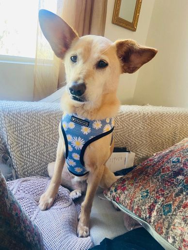 Caterpillar is the sweetest little dog! Known as Nala at the Downey shelter, she was owner surrendered on June 24, 2023. She is a kind, sweet, social little dog. She is 14 years old with some arthritis, which we are treating. Her previous owners said she was a 100% outside dog who didn't like a crate. She loves going into her crate to sleep and has made herself at home on her foster's couch. They also said she is destructive, and yet, she has not damaged anything in her foster home. She was with a temporary foster. Someone was interested in adopting her, but it did not work out. Then, we found a wonderful couple to foster her. They of course, fell in love and adopted her!