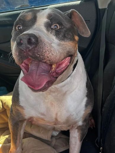 Cobblestone may be the nicest, kindest, sweetest pit we have ever met! He is 9 years old and has a full life ahead of him now that he has surgery to remove his bladder stone and spleen. here is his backstory:Time to do your happy dance! Sullivan, now cobblestone has made it out of the building!!! Cobblestone is a super sweet, friendly senior pit bull. He was brought to the shelter as an owner surrender on on March 24, 2025. He was having trouble urinating and walking. X Rays revealed a huge stone in his bladder. With the help of a great foundation, we were able to get him out of the shelter and into the vet hospital for surgery. We rescued him april 9, and he had his surgery to remove the bladder stone and his spleen ( it had tumors) on April 10. A wonderful former foster and adopter stepped up to foster him while he recovers from surgery. This dog is the nicest dog! he needs a forever home once his stitches are out. Cobblestone is ready for his forever home now! here is a short video of when he left the hospital!
