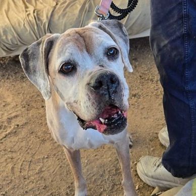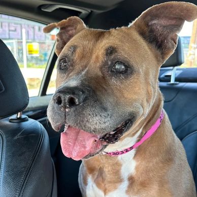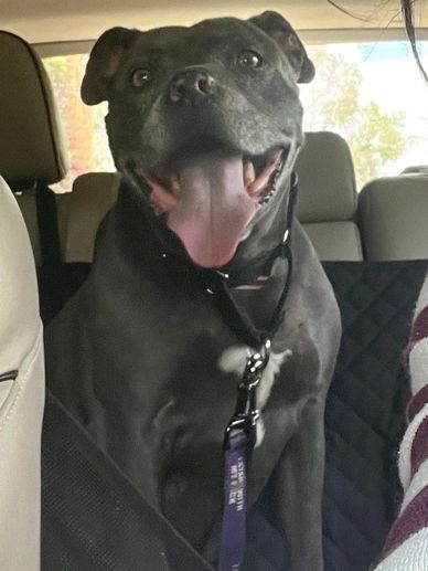 August 20, 2025 was a great day! We rescued Lucy, #a5712236! Lucy, now Crypto, is a super sweet, friendly, 12 year-old little staffordshire terrier. She was owner surrendered to the shelter on July 10, 2025. I don't know how someone could give up this dog. She's so sweet and friendly. She was spayed at the shelter and even went to an adoption event. But no one was interested in her. so as it happens with all these senior dogs, she was put on a 72 hour notice.
