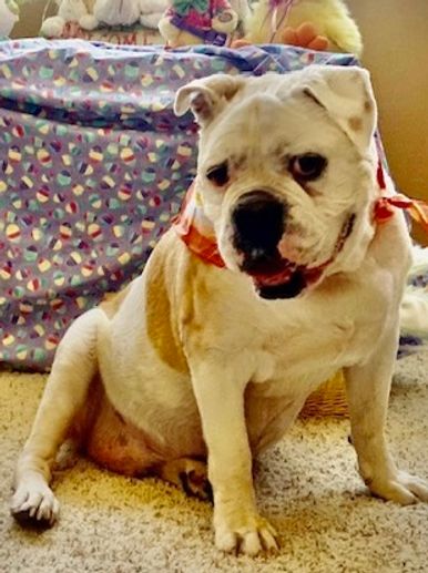We are so thrilled that Chubby's foster has adopted him after fostering him for over a year! He is a super sweet 12 year old neutered English bulldog that found himself at the Castaic ACC after his owner was hospitalized on September 25, 2022. We rescued him on October 28, 2022. He was overweight and under muscled, but is doing much better now that he is in a home. He has a thyroid condition which we are treating . At first, our foster could only take care of him short term. however, no one stepped to help and the foster fell in love! Chubby deserves to spend the rest of his days on a bed at the feet of someone he adores and who will adore him and now he has that!