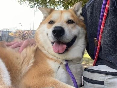 Cowboy, known as Romeo at the Baldwin Park ACC was brought in as an owner surrender in December of 2019. He was overlooked! Cowboy is a very gentle, sweet, 10 year old Akita/cattledog mix. We pulled him in February 2020, to be fostered by one of our neighbors. Cowboy quickly won the heart of his foster and is now an official "foster fail" and in his forever home.