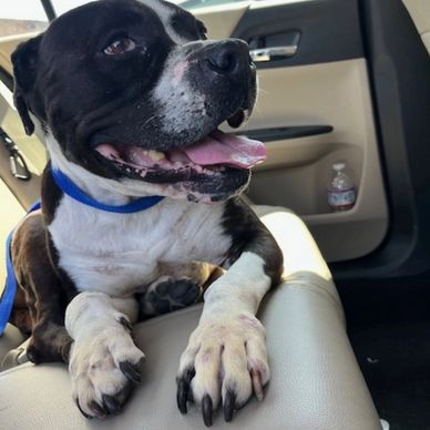 We should have named this dog continuation because we kept having to postpone our pull date for her! This is sweet lady bug, now Christmas. She arrived in the shelter on January 2, 2024, and they immediately put out a deadline for her to be euthanized. we emailed and said this is ridiculous, and asked for time to find a foster. they did! And it took us 3 weeks. It took us that long but finally we found a wonderful couple who are willing to take ladybug, now Christmas, into their home. This is her picture on her Freedom ride on January 23, 2024. look how happy she is. She had some skin and ear issues which we took care of. The foster moved to northern california, took christmas with her and now has adopted her! we are so glad to offer her the best of the rest of her life