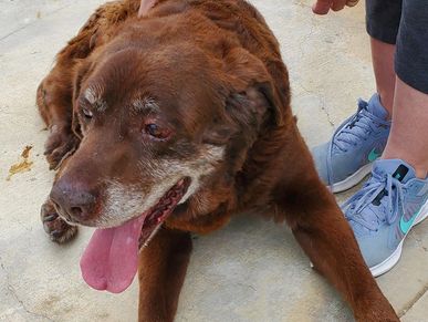 Carson, aka Bruno from the west valley shelter was owner surrendered as a 12 year old dog on July 28, 2023. He had difficulty walking so of course, the shelter wanted to euthanize him.A wonderful couple reached out to us and said they would adopt him, so of course, we had to save him! he is super sweet and friendly. We rescued him on August 24, 2023.