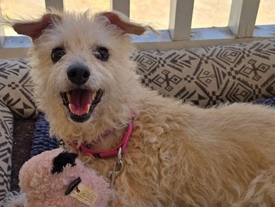 Georgina, now Cuttlefish, was brought to the Downey ACC as stray dog on October 26, 2023. This little terrier or schnauzer mix, they labeled as a poodle mix, was very fearful and scared. She wouldn't move in her kennel. We had to get her out! We have had some amazing people step up to foster the little dogs lately, so cuttlefish was saved on December 7, 2023. We are giving her time to settle into her new foster home and realize she is safe before we take her to the vet. She doesn't have any major medical issues. In time, she will see she is safe, loved and will have the best of the rest of her life! oF course, her fosters fell in love and are adopting her to give her a forever home!